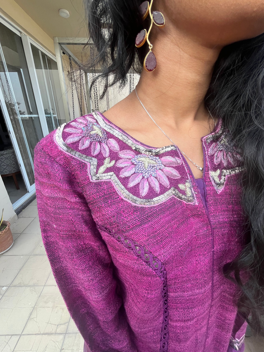 Work: Hand Embroidery on Neckline & Sleeves