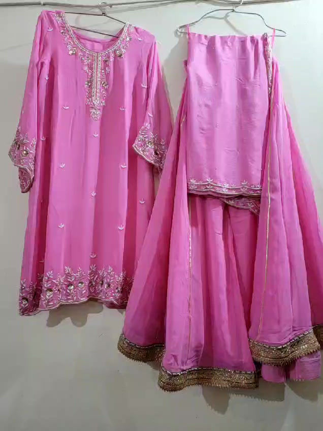 Pink Georgette Sharara Set